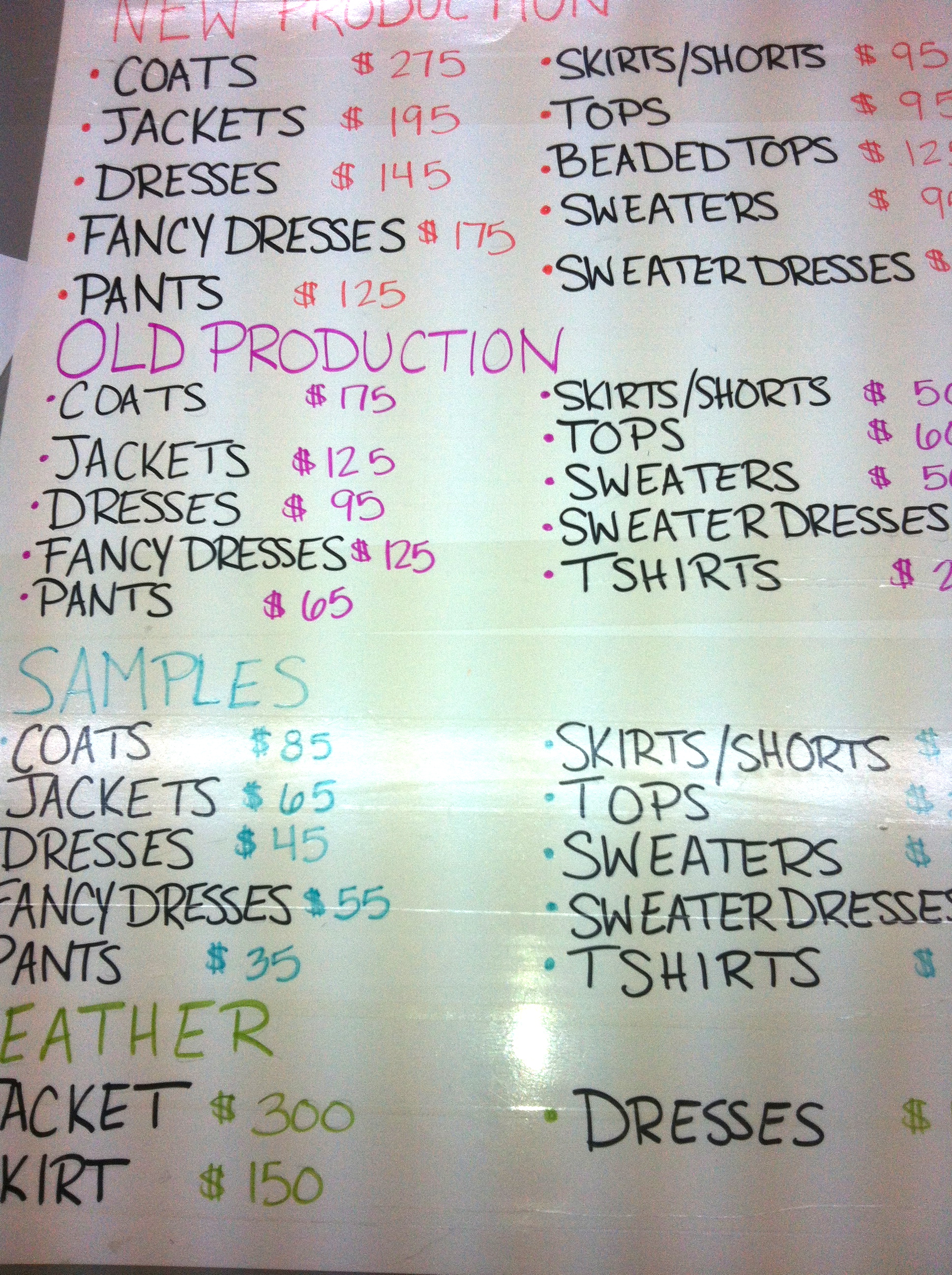 I snuck a picture of the price list when I was checking out – sorry for the quality!
